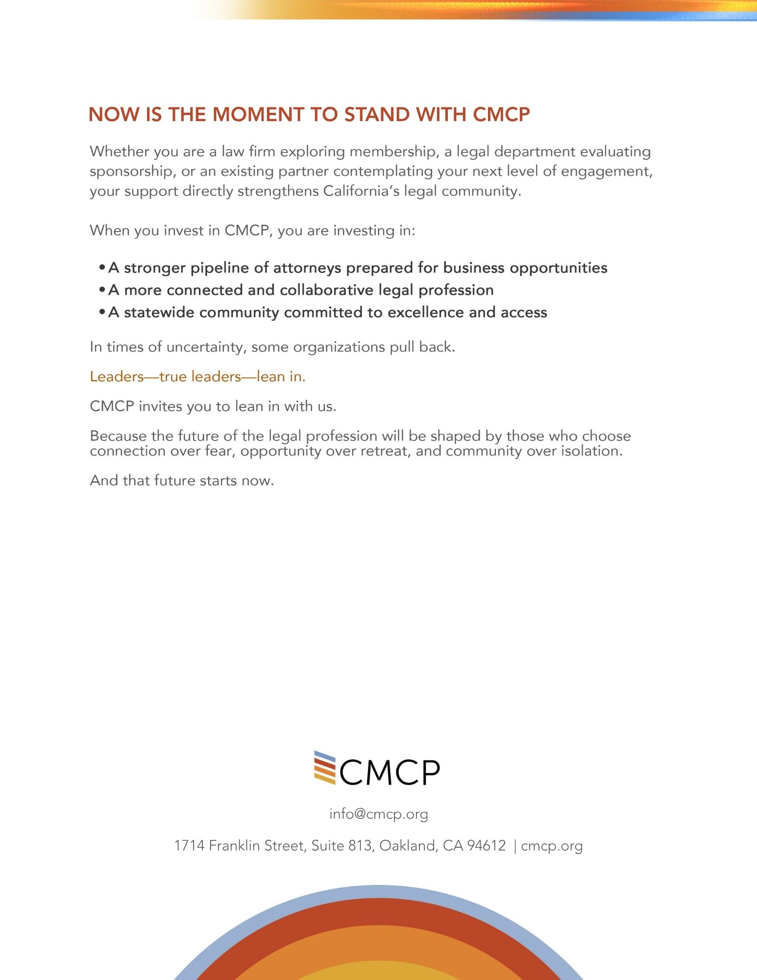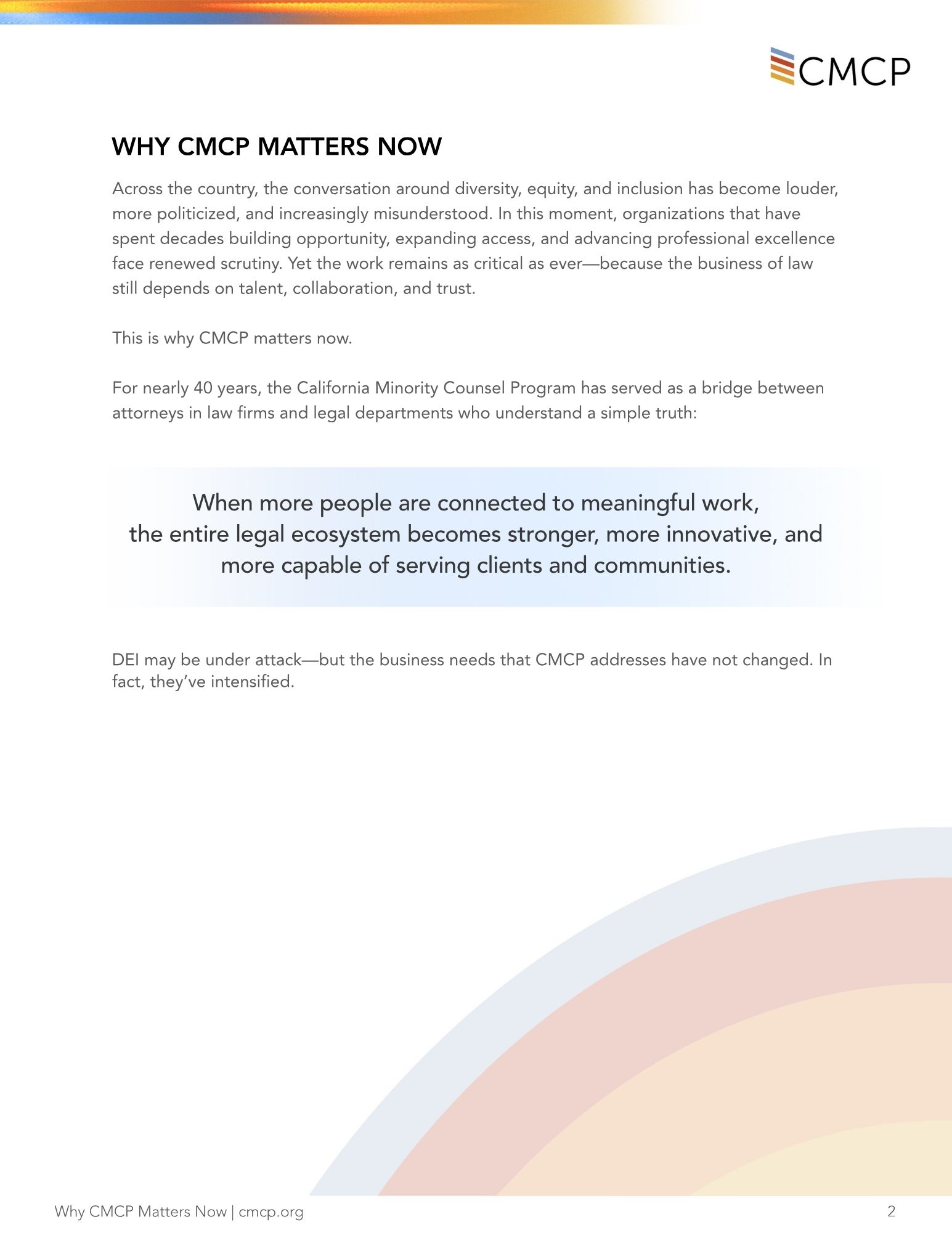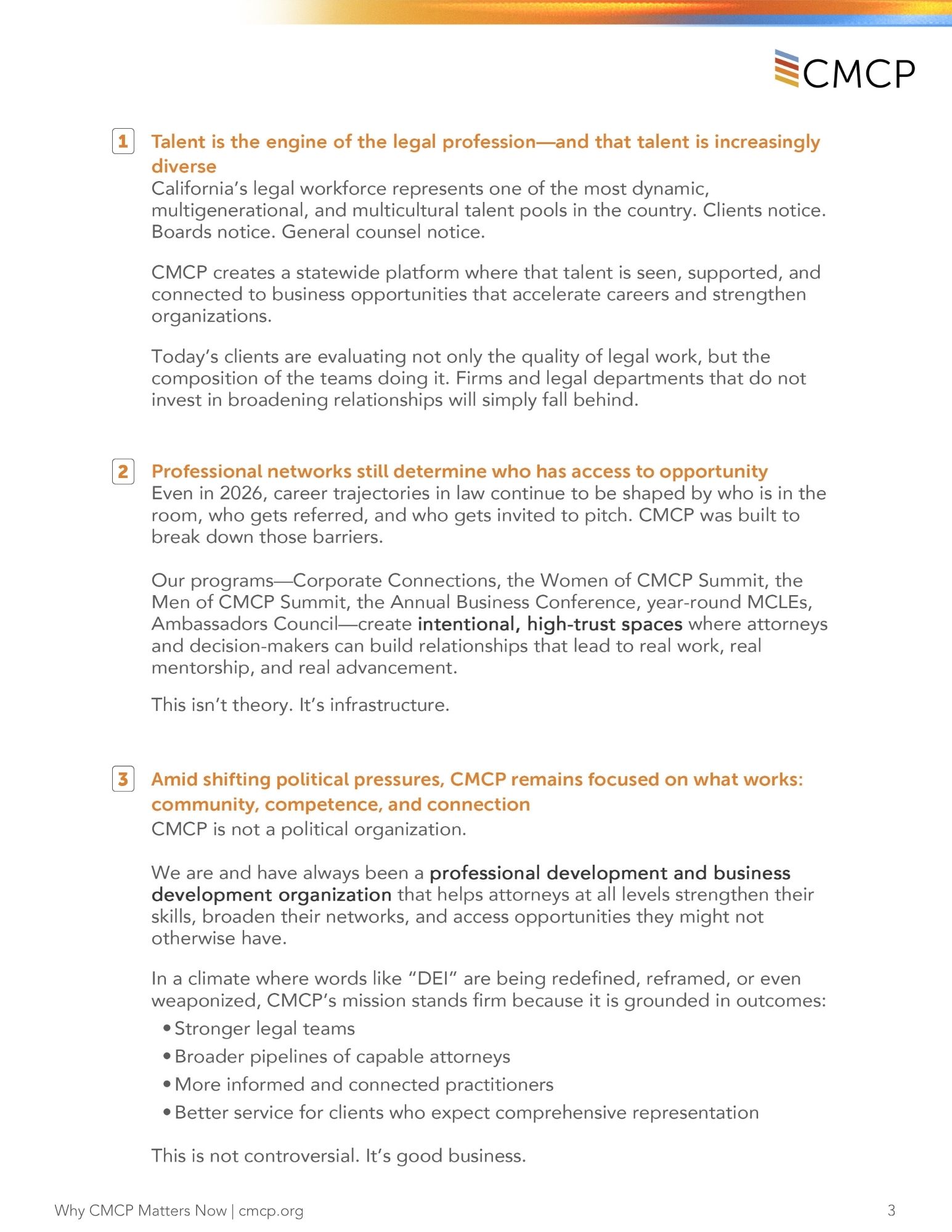 In a time of rapid change and increasing complexity, the legal profession depends more than ever on connection, opportunity, and trust. “Why CMCP Matters Now” explores how CMCP continues to strengthen the legal ecosystem—by bringing talent, relationships, and business development together when it matters most.
